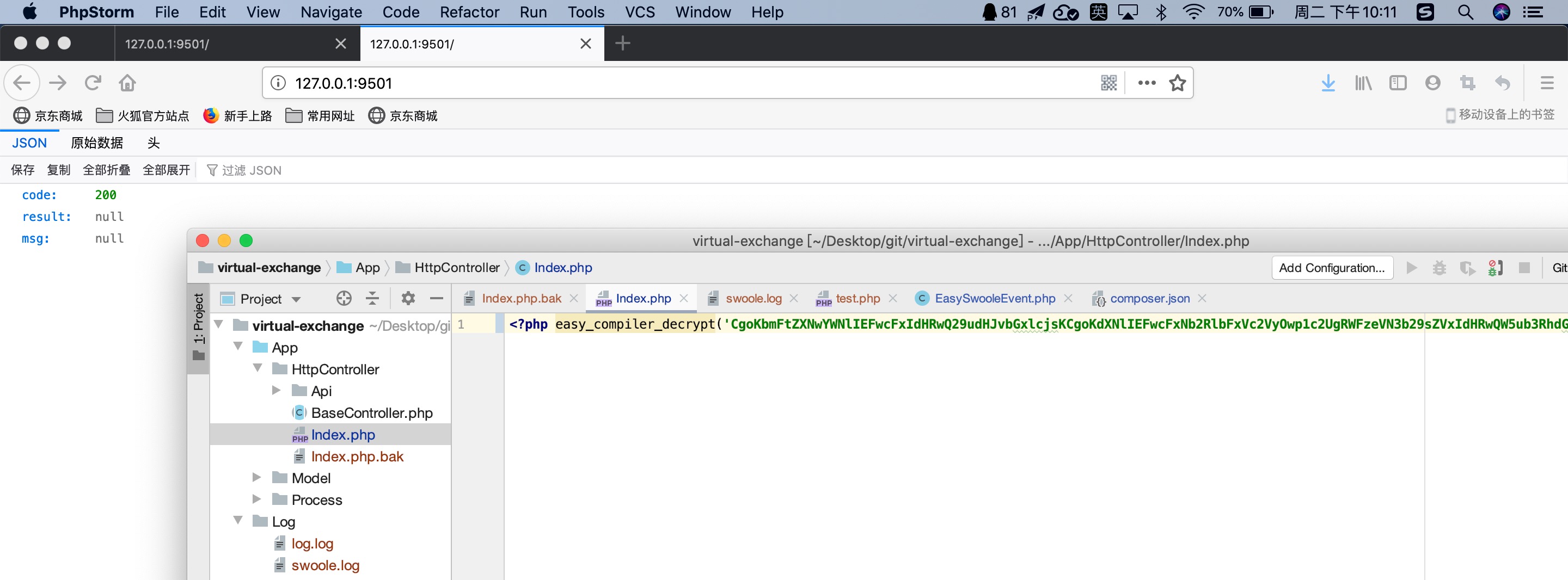 php vendor/easyswoole/compiler/bin/easy-compiler App/HttpController/Index.php