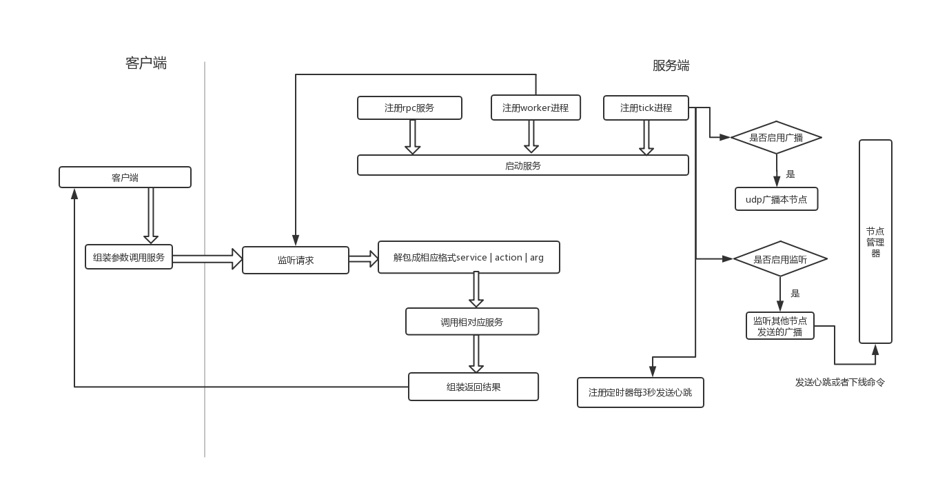 客戶端發送請求->解包成相對應的格式->執行對應的服務->返回結果->客戶端